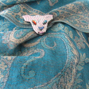 Iridescent dichroic puppy shawl/pin is one of a kind and handmade by me, in my glass studio, in Vermont. Its whimsy will spread cheer and delight to you and all who see it.