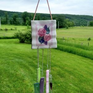 This  mosaic antique red car wall art has been in the kiln for two firings, each of which was over 30 hours, and  up to 1500 degrees. The first firing allows the mosaic background to become very smooth and shiny. A second firing  at a lesser temperature allows the pieces to adhere together but not sink  to become a part. In this way the  red car  with dichroic glass  highlights  stands out in three dimensions. With the inclusion of the  dichroic glass light reflects and refracts and  adds glimmer to the changing  color.  All the glass is adhered together and  become one piece.