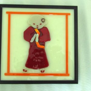 This “Day’s Outing with the Girls” glass wall art is a whimsical 11 x 15 fused glass panel that will brighten wherever it goes with…